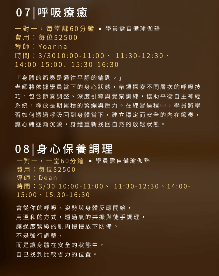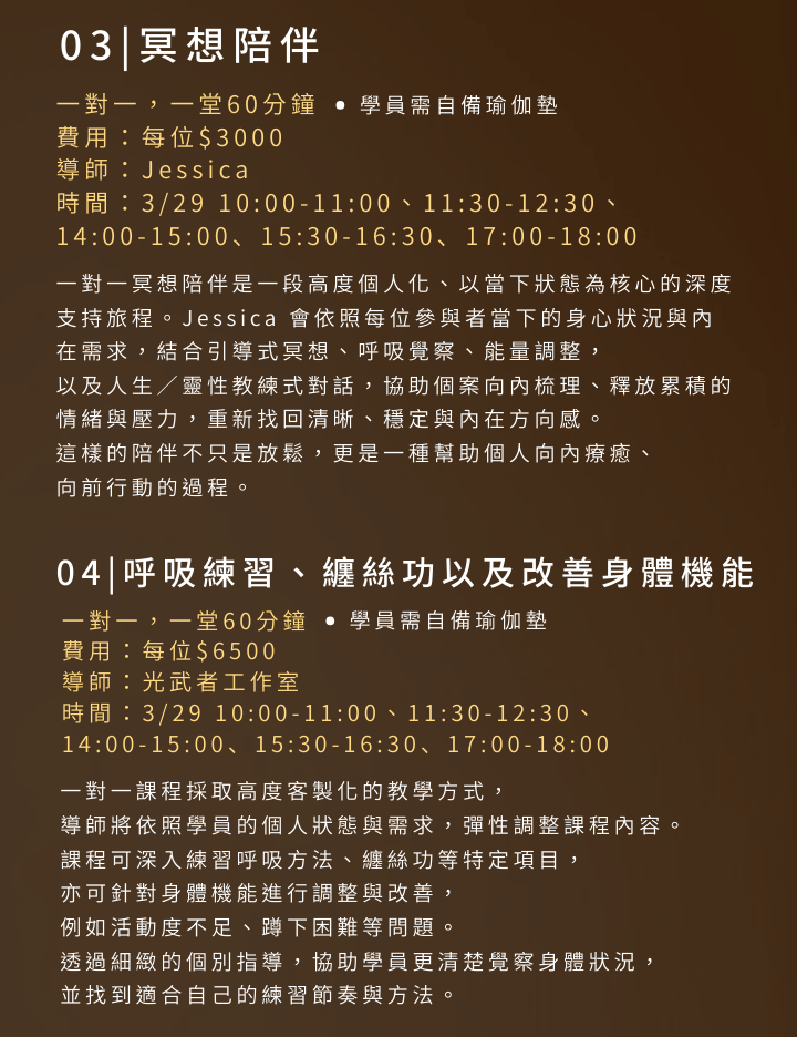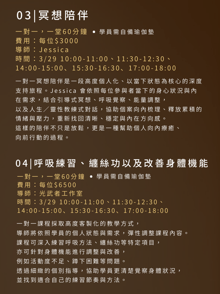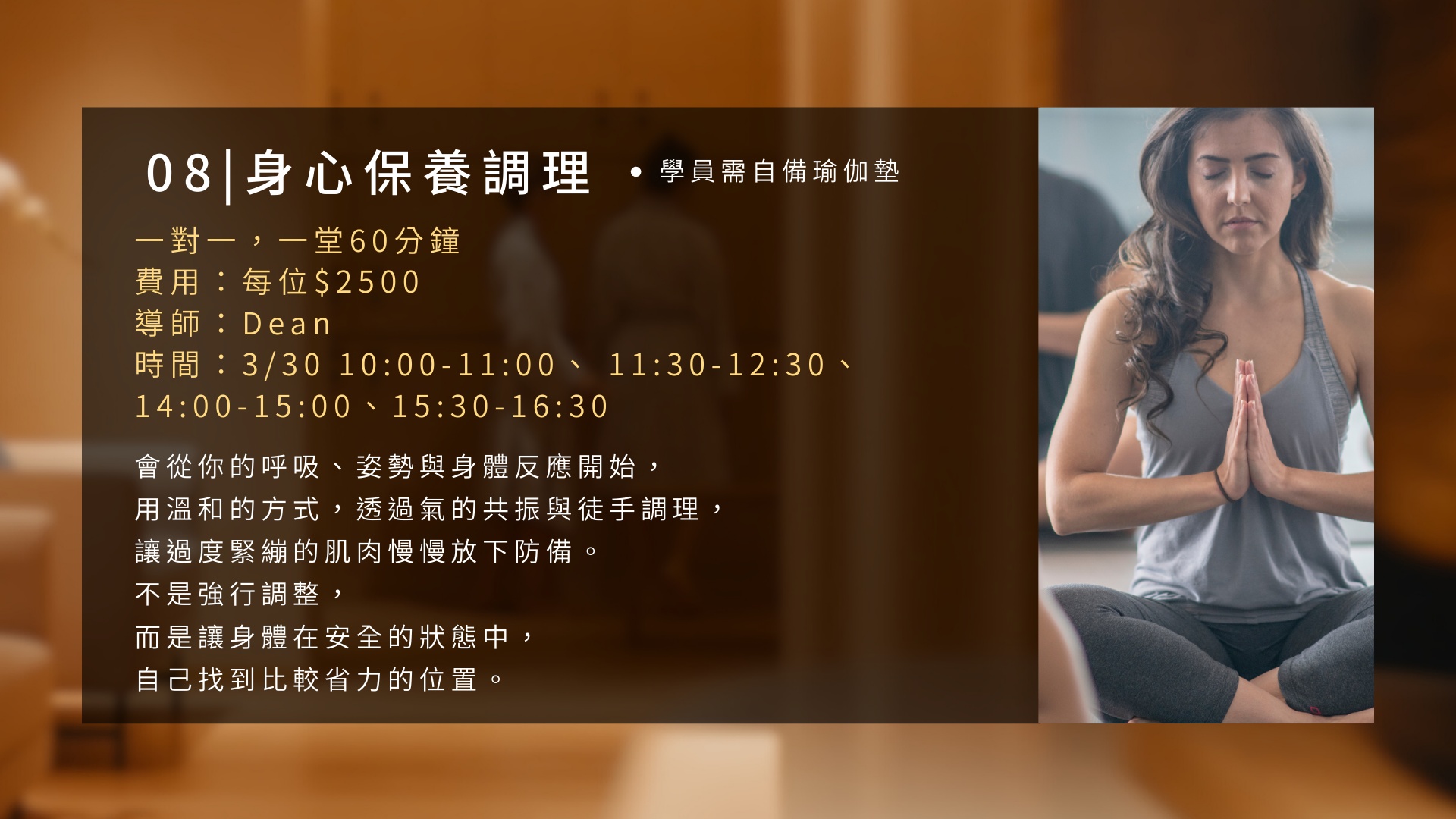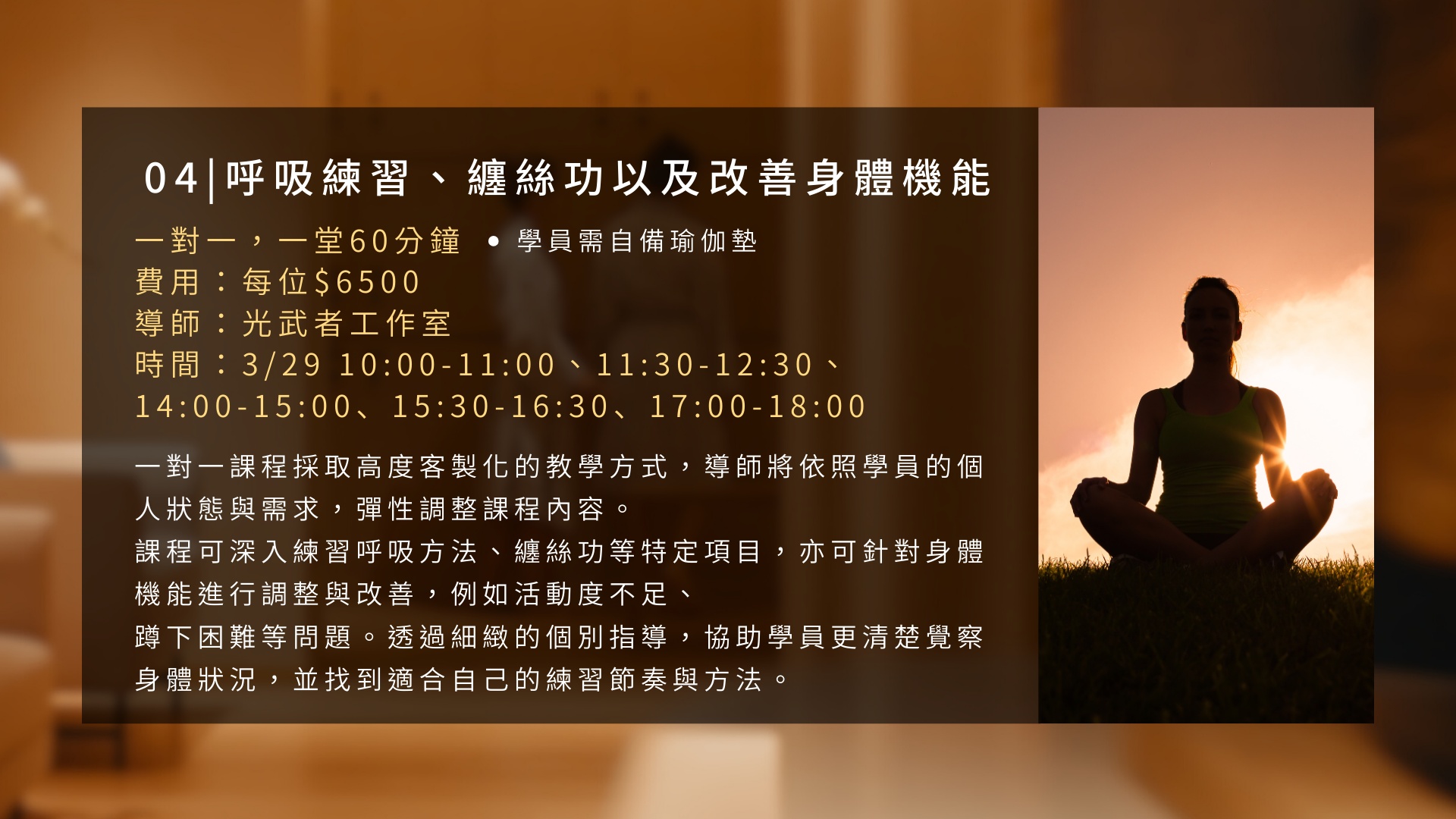 呼吸練習、纏絲功以及改善身體機能(一對一)