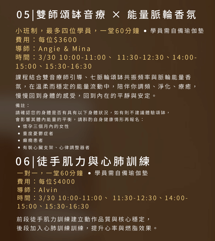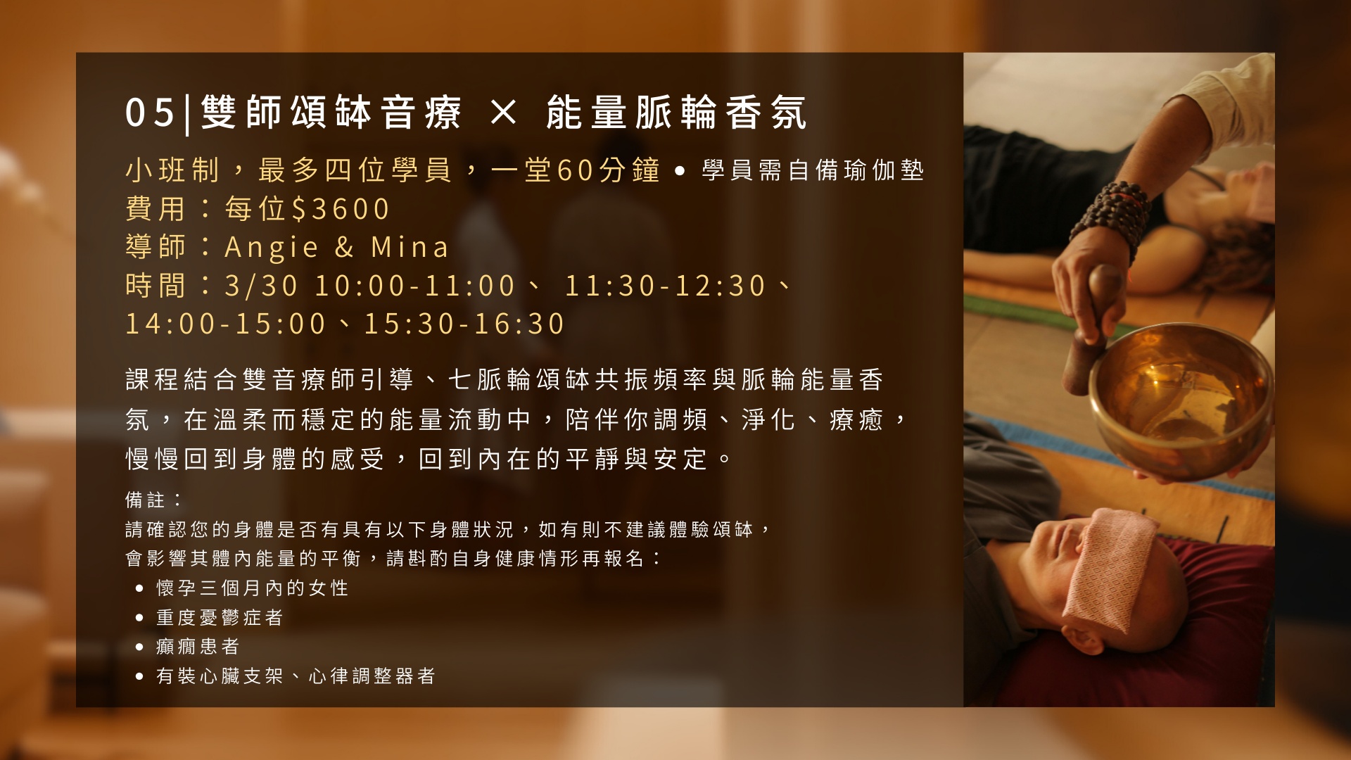 雙師頌缽⾳療 × 能量脈輪⾹氛(小班制,每堂課1小時,每堂4位學員)
