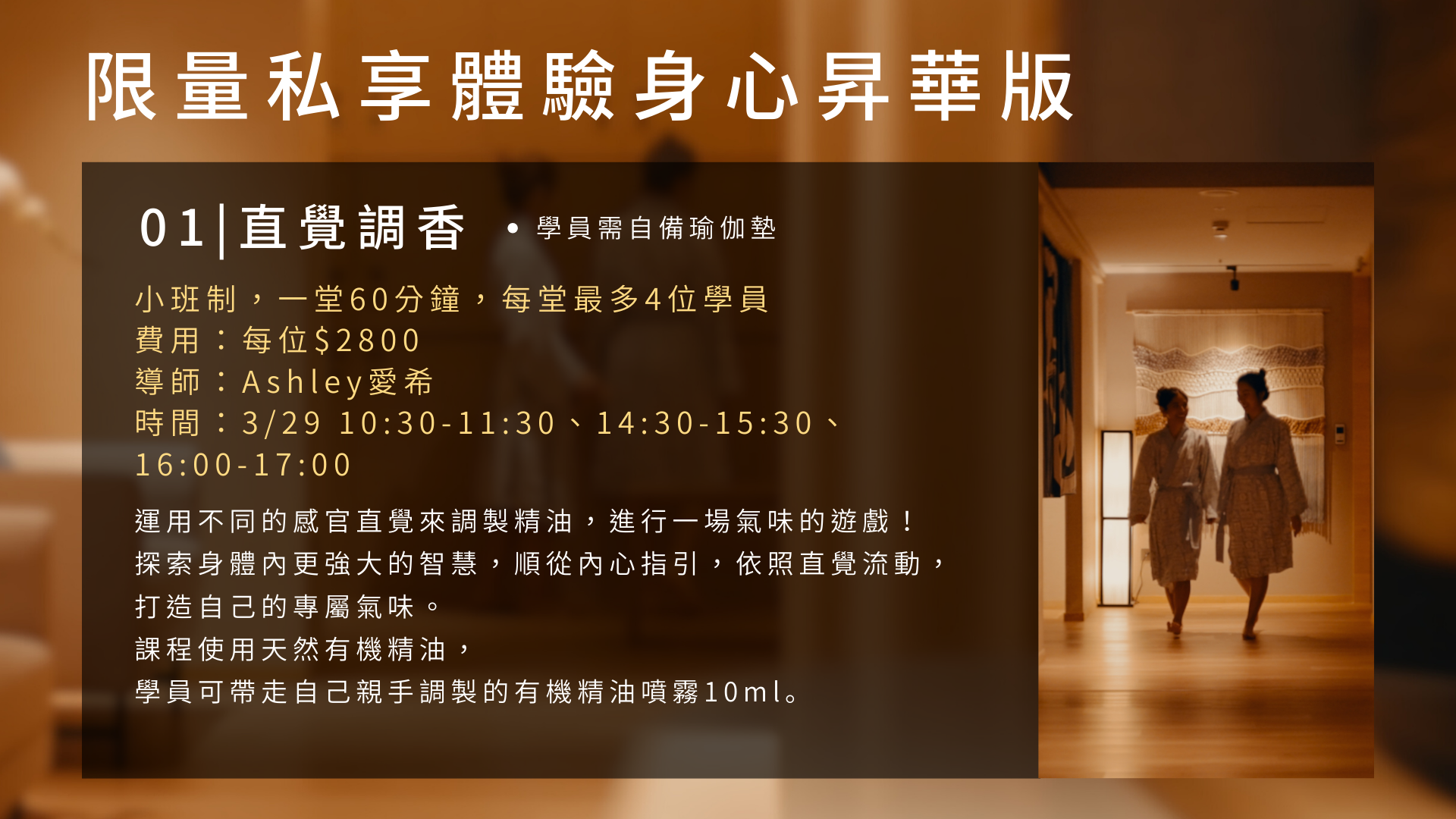直覺調香(小班制,每堂課1.5小時,每堂4位學員)
